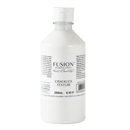 Obtenez un magnifique look de peinture vieillie et craquelée en utilisant le CRACKLED TEXTURE de FUSION. Appliquez une mince couche de base, laissez sécher, puis peignez par-dessus. La texture craquelée est faite des mêmes ingrédients de haute qualité que la Peinture Minérale FUSION et collera à presque tout. Pour obtenir des fissures plus grandes et plus épaisses, appliquez une couche plus épaisse du CRACKLED TEXTURE.