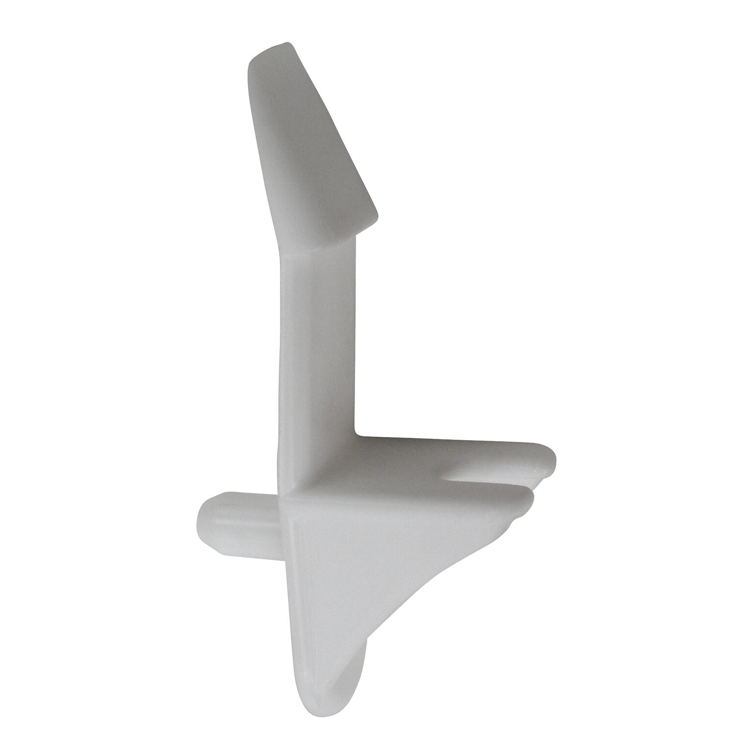 Support en plastique avec retenue, conçu pour les tablettes de 15,7 mm (5/8 po) d’épaisseur; peut supporter jusqu’à 40 kg (88 lb).